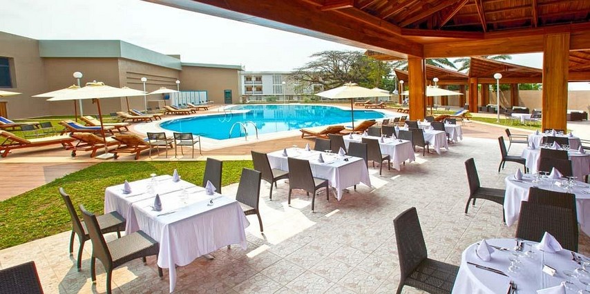 Thus, your C.T.H agency can book you, as part of your tourist stay in Brazzaville, a room, or even a suite in this hotel which also has a restaurant, a café and a poolside bar.